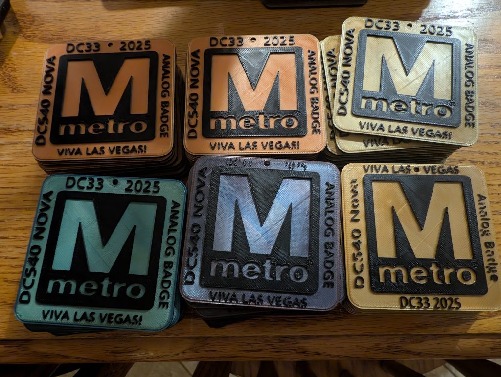 We decided to go with an analog badge for DC33. Between tariffs and time availabilty, and the memory of how much work we poured into the Chakra badge last year, we weren’t going to do anything at all. I don’t think a lot of people realize how much goes into a badge.